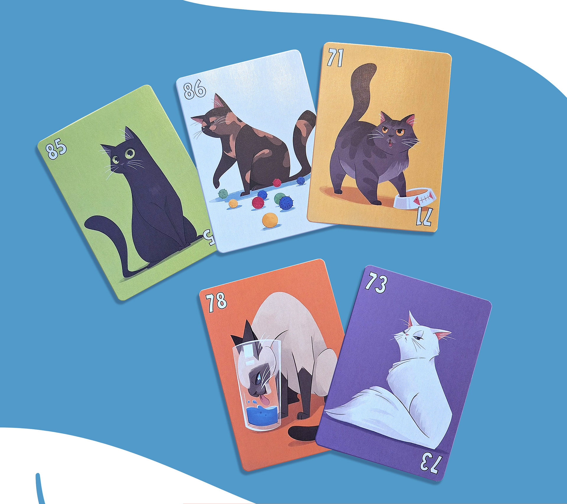 I developed these quirky cats for the "Whiskers & Tails" card game by Gold Seal Games. The goal was to have many different cats, each with its own personality and personal look. These illustrations are based on photo references provided by the publisher. I had a great time working on this and making sure that each cat mirrored its real-life doppelganger.